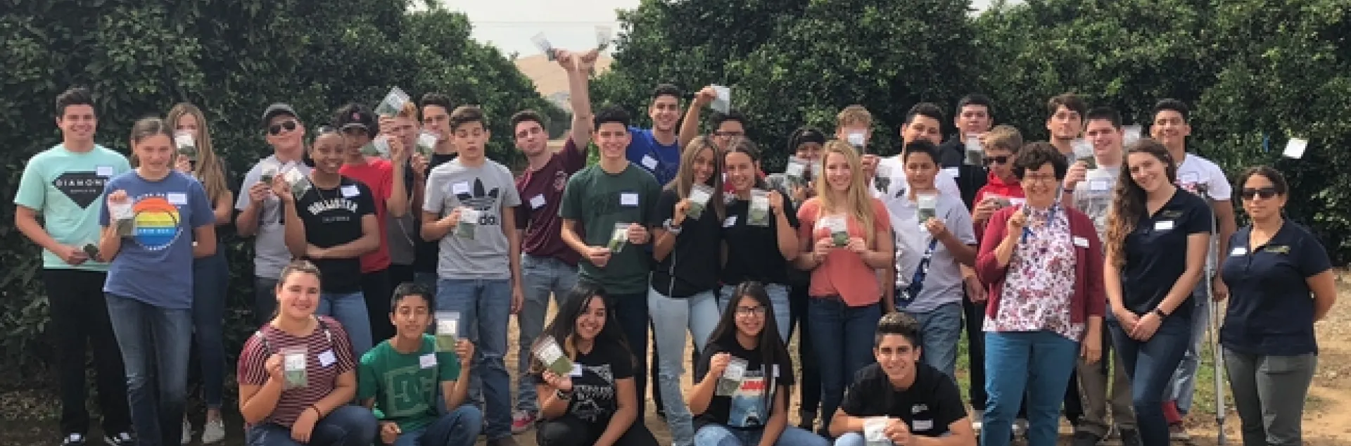 Thirty Hanford Ag Academy 9th grade students, led by teacher Jason Ferreira came to Lindcove REC to experience Agricultural Science on August 30. Students studied the biology of the citricola scale, collected scale-infested leaves that had been treated with various chemicals, evaluated the survival of the scales, and calculated and graphed the response of the scales to the treatments. This annual event provides the students with a real-life example of how science is conducted in an agricultural setting. Dr. Beth Grafton-Cardwell and her assistants Stephanie Doria and Narges Mahvelati taught the class.