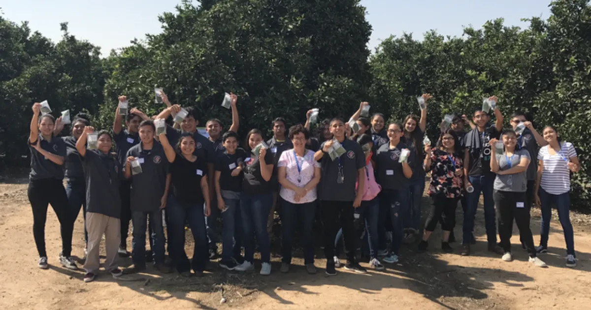 On Friday, August 31st the Woodlake High School 9th grade Agriculture Academy students, led by teacher Don Thornburg, had the opportunity to visit the UC Lindcove Research Center. This visit was the kick off to their 9th grade Project Based Learning (PBL) which will help train them to produce and present an AgriScience project of their own. Dr. Beth Grafton-Cardwell and her team, Stephanie Doria and Narges Mahvelati, provided instruction on using the scientific method and how to apply it as it relates to citricola scale infestations of citrus. Woodlake students became scientists for the day and applied the principals and methods that agricultural researchers use daily.