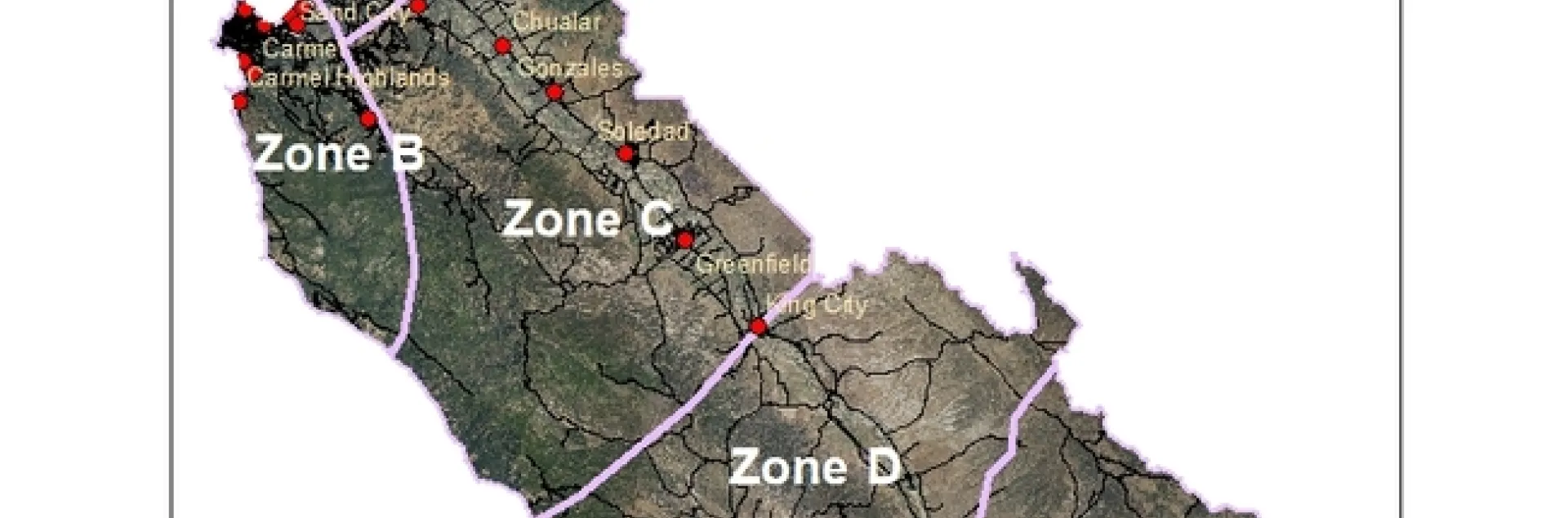 Monterey County has been divided into five rainfall zones (see Figure 2).