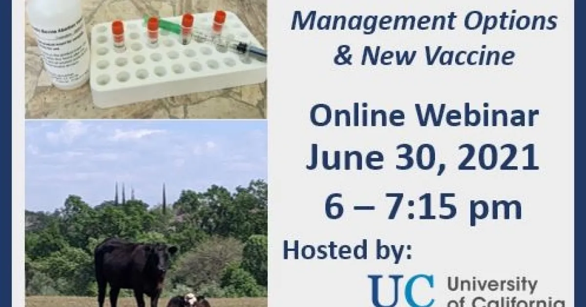 Each year, it is believed that foothill abortion costs the California cattle producers over $10 million annually. Join us to learn more about the disease and recently released vaccine. Click here to register now for this free event.
