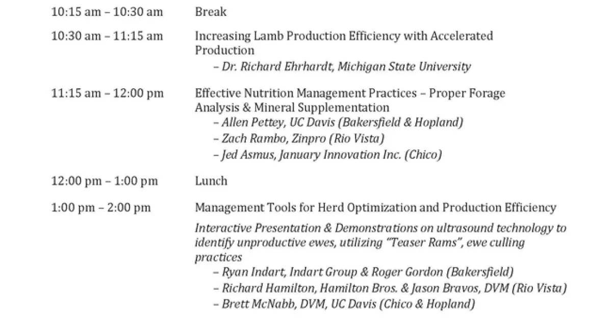 Improving Lamb Marketing, Quality, & Profitability: Options for California Producers Workshop: January 2018