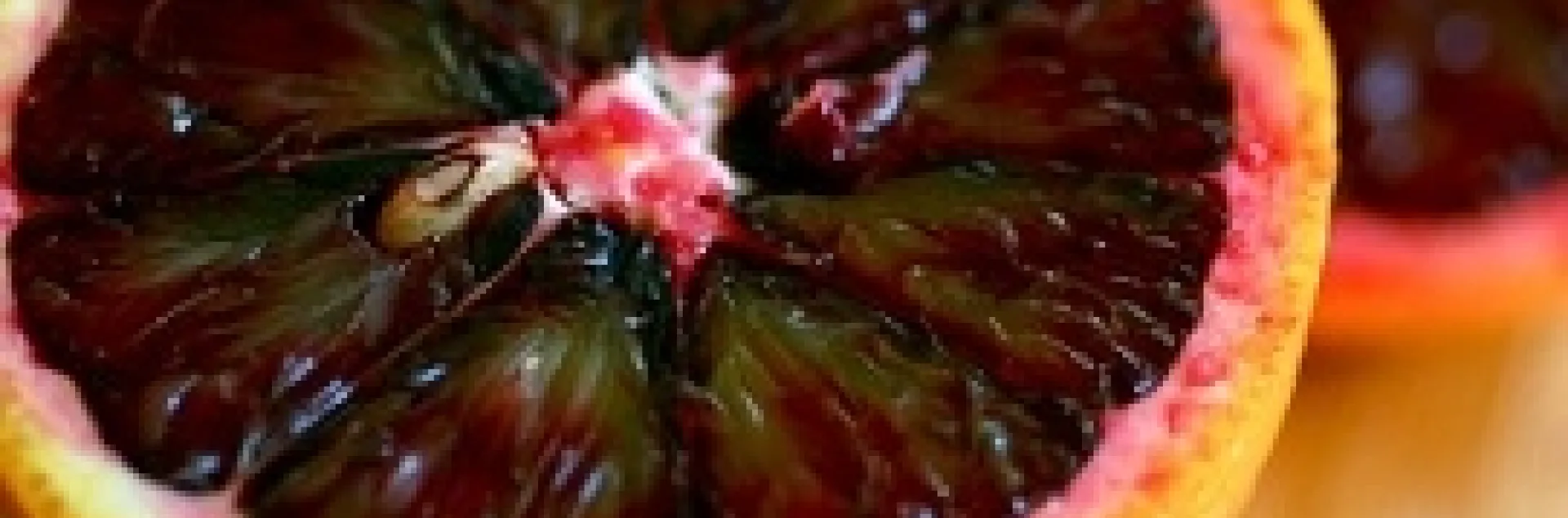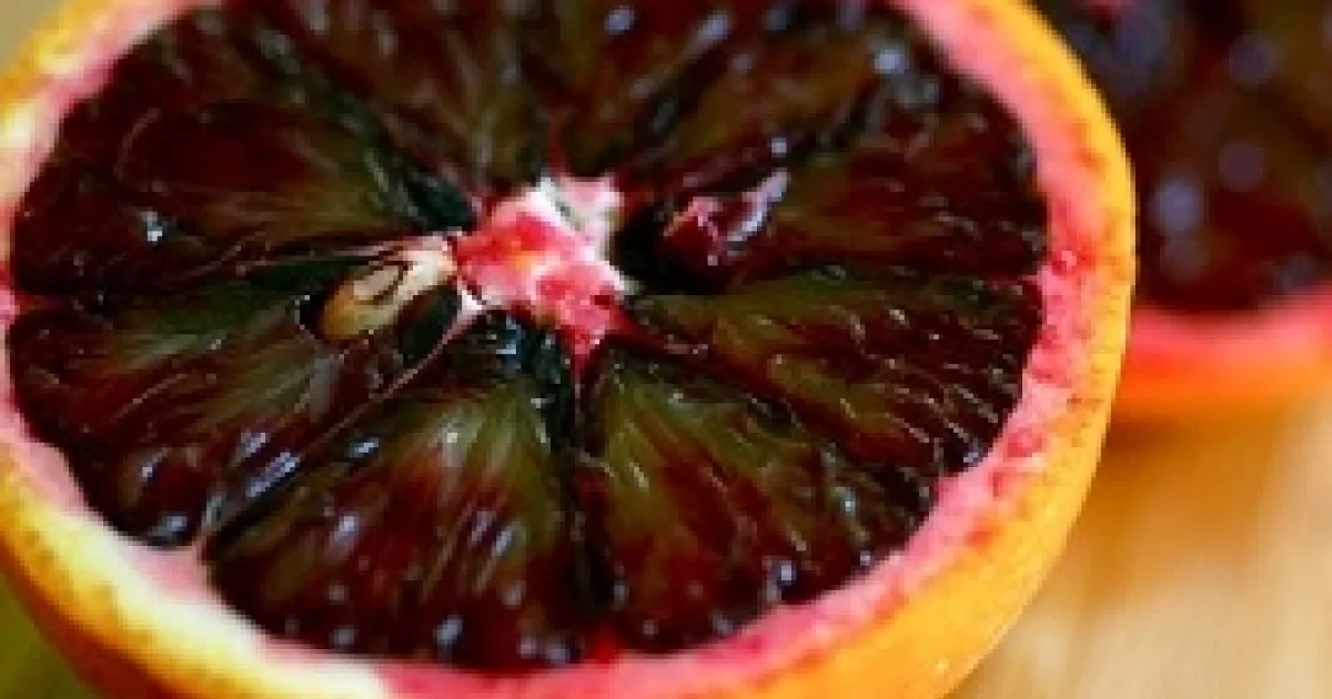 Interesting fruit, no? Our blood oranges were supposed to be Cara Cara Navels, but we got a dark, dark blood orange; it is mostly darker than the one pictured here. Ours definitely has a "red" taste to it, sorta like berries or raspberries, and are generally much darker than the orange at right--that pigment is what gives them that berry flavor.