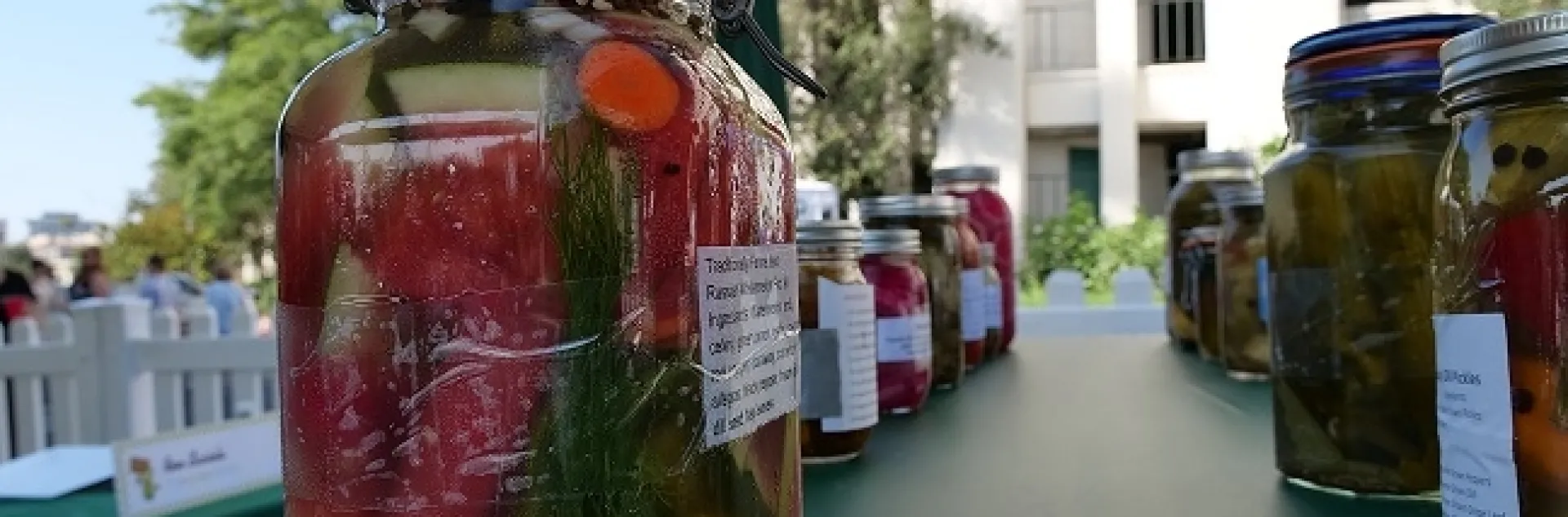 "I Can Pickle That". 10 contestants. First Place for Russian Watermelon Pickles, a nice ribbon and a $100 gift certificate.