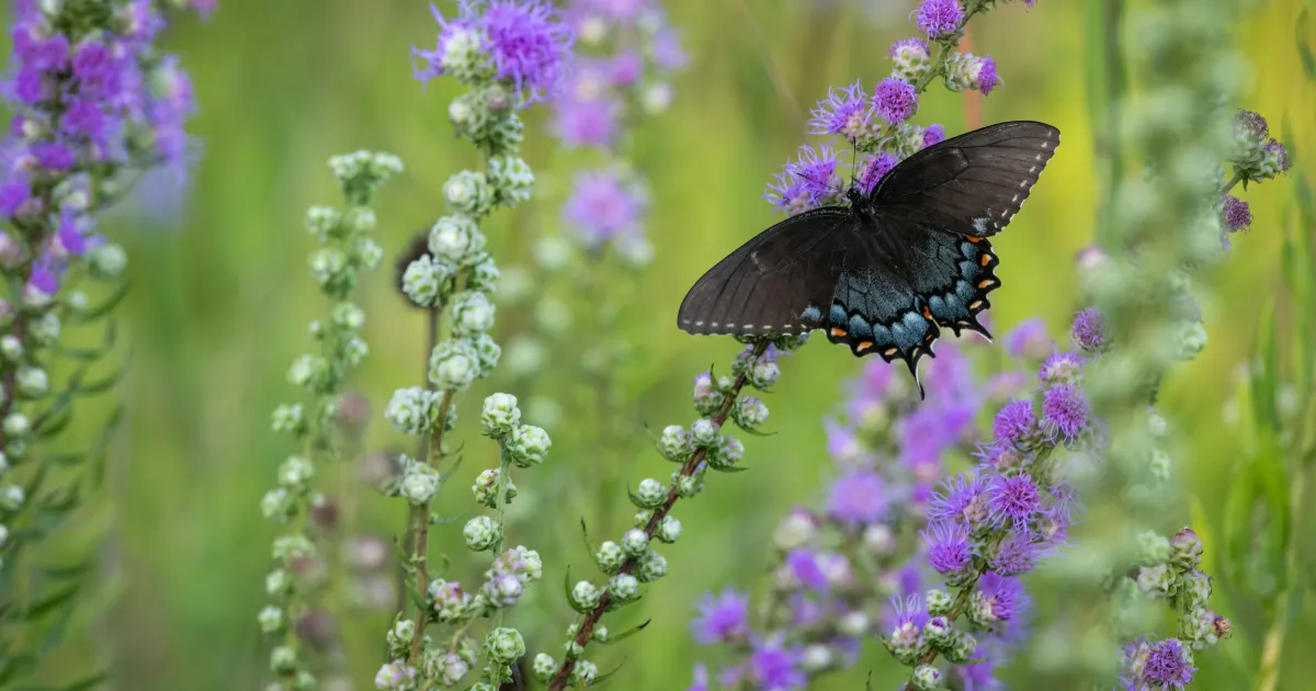 I was just out in my garden where many flowers are in bloom. While looking at a flowering lavender, I counted six or seven honeybees feasting on the nectar in the blue flowers as well as a bumblebee checking out the whole garden. Butterflies were also flitting around, inspecting the flowers. I spotted both pipevine swallowtails and anise swallowtails .