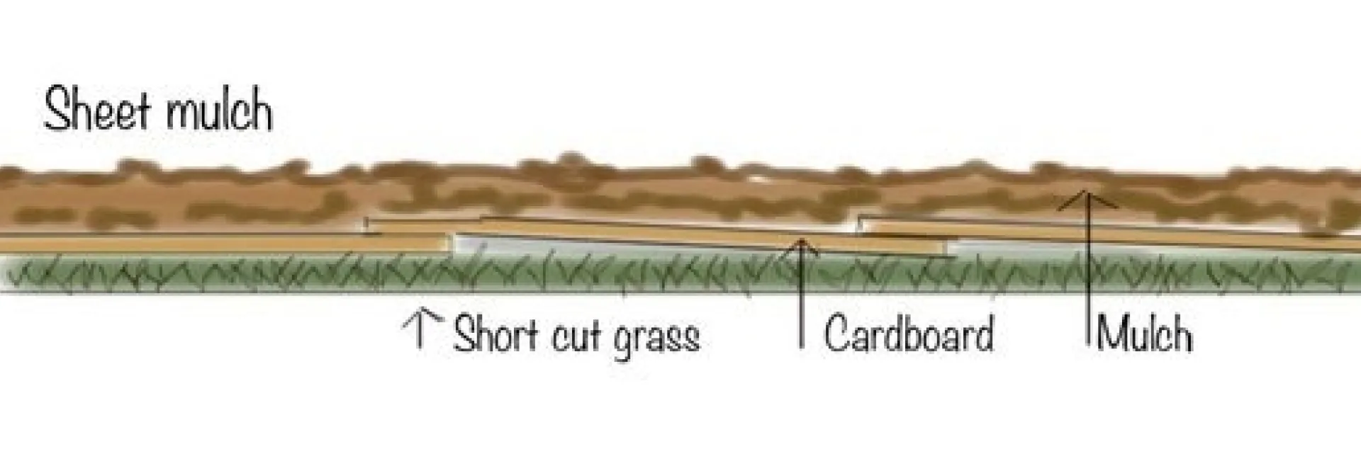 Sheet composting is a passive method of composting. It involves laying plain cardboard or newspaper on soil or lawn and covering it with compost or leaves or both. Autumn is the best time to do this because it gives a chance for the materials to break down and refresh the soil before spring planting.