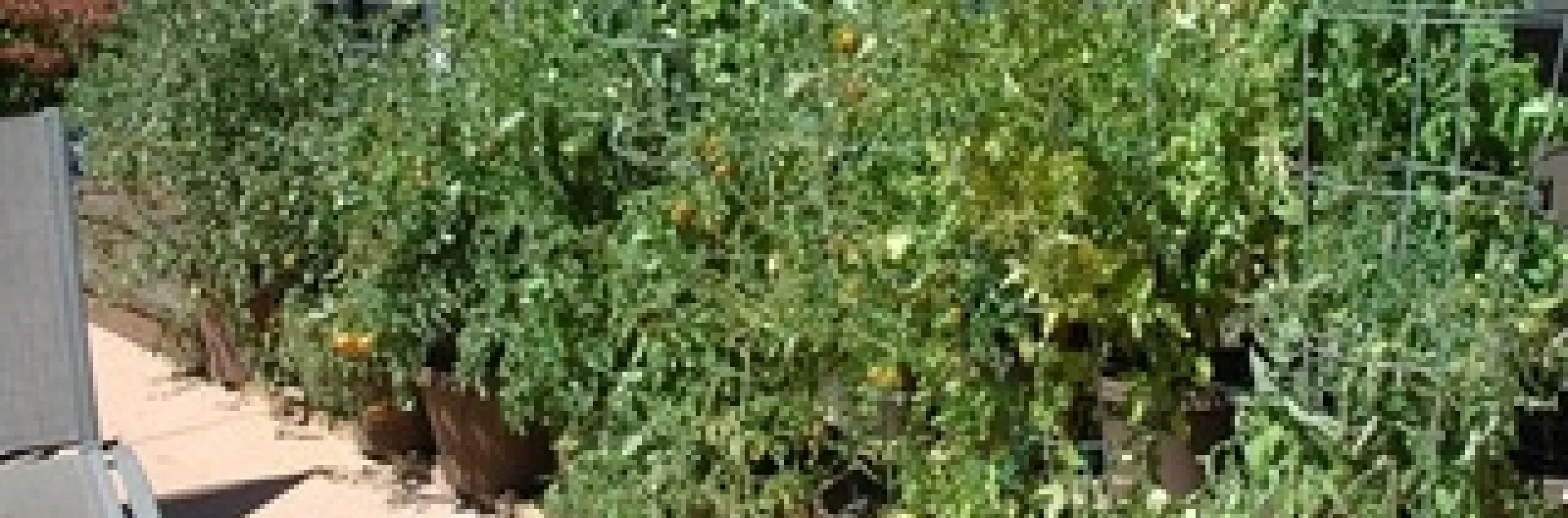 Carolyn d'Almeida grew tomatoes in barrels along a south-facing wall. She created mini dry wells of smaller pots (with holes in the bottom) filled with gravel and set them into the barrels so that the bottom of the small pot was at the level of the tomato root zone. Filling the smaller pots with water sent the water directly where it was needed. She got plenty of tomatoes with minimal water use.