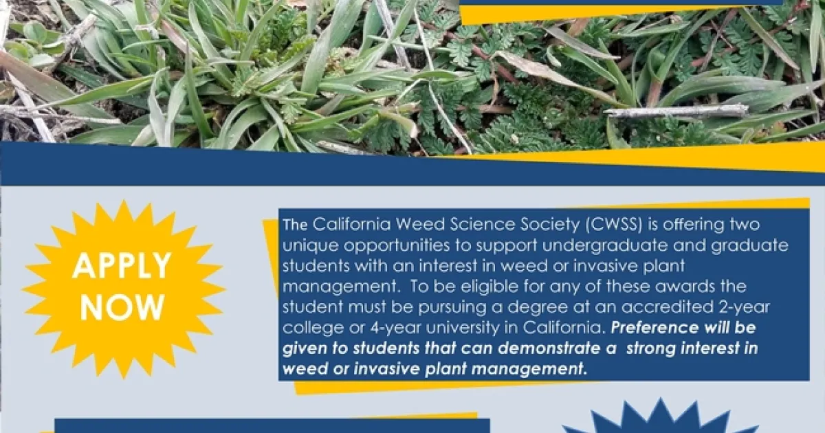 Description of Scholarship: TEE recipients will have a five day, four night educational experience of their choosing, as described in Table 1. Opportunities for broadening knowledge of weed science range from field, lab, and extension settings with industry, government, or university professionals. Each recipient will be awarded $2000 from the WSSA to pay for expenses incurred during his/her experience.