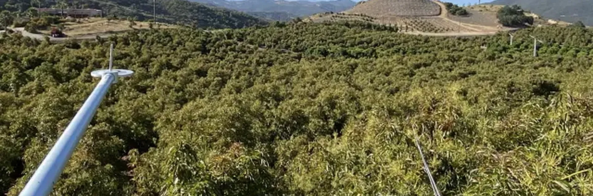 “Quizá a nadie le guste investigar en una pendiente de casi el 45% y levantar torres de 9 metros de altura para recoger datos de sensores por encima del dosel”, expresó Montazar, “Pero si se encuentra en un terreno plano viendo a almendros o pistachos, todos están felices de llevar a cabo una investigación allí”.