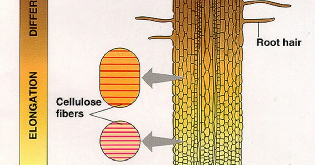 The root tip has overlapping zones: where cells divide, elongate, or form different specialized cells. At the very tip, the root cap protects the rapidly dividing cells known as the meristematic region or meristem (zone of cell division). Behind the meristem, cells elongate and push the meristem and root cap forward into the soil so the root can explore and mine new soil (zone of elongation). And further back, only a fraction of an inch, is the portion where elongation stops and cells become more specialized and functional (zone of differentiation).