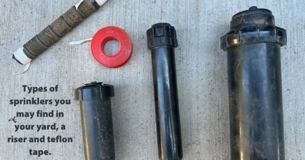 Types of sprinklers you may find in your garden, pipe tape and a riser