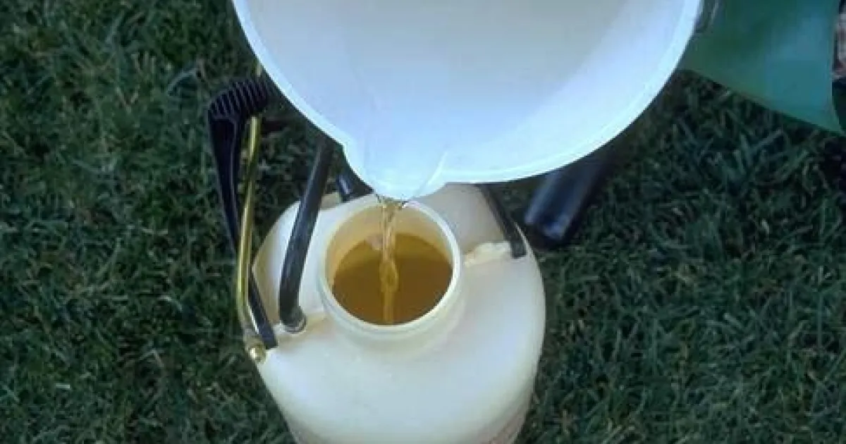 When mixing pesticides, measure precisely following the rate listed on the label. Photo by Jack Kelly Clark.