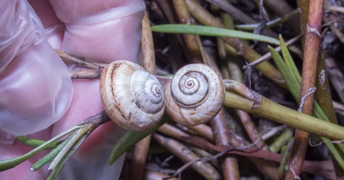 Use rubber or latex gloves when picking or handling snails and vegetation with their slime trails, and wash hands thoroughly afterwards. Snails and slugs are intermediate hosts of rat lungworm disease, which is likely present but not yet officially detected in California. Rat lungworm disease is caused by a parasitic nematode that can attack the human brain and spinal cord if ingested.