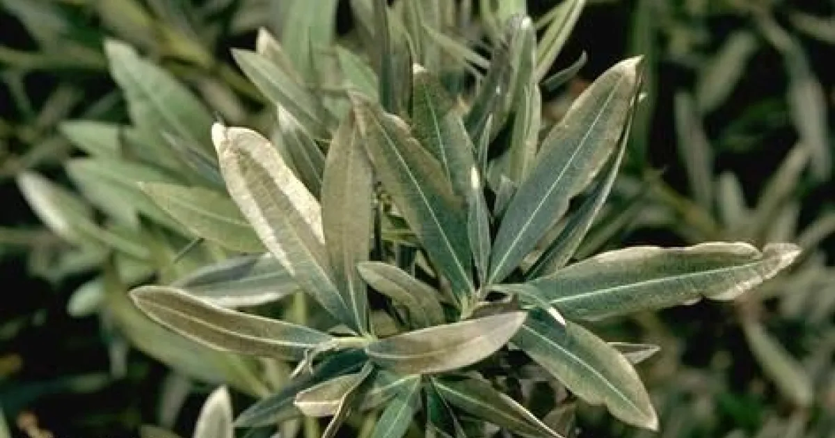 Oleander leaves with damage to leaves by freezing weather. (Credit: Jack Kelly Clark)