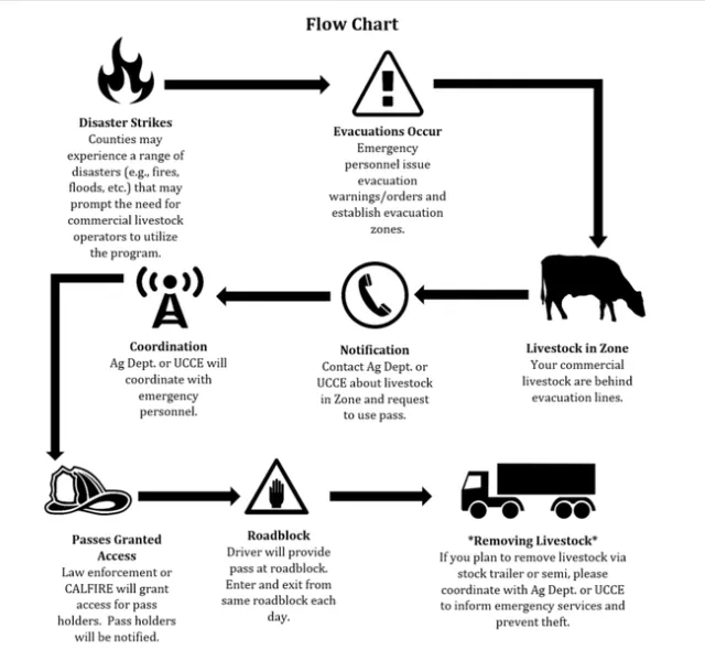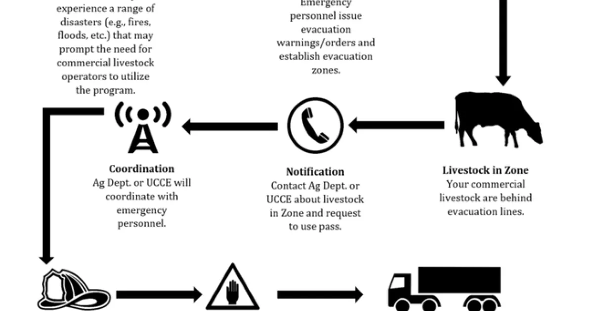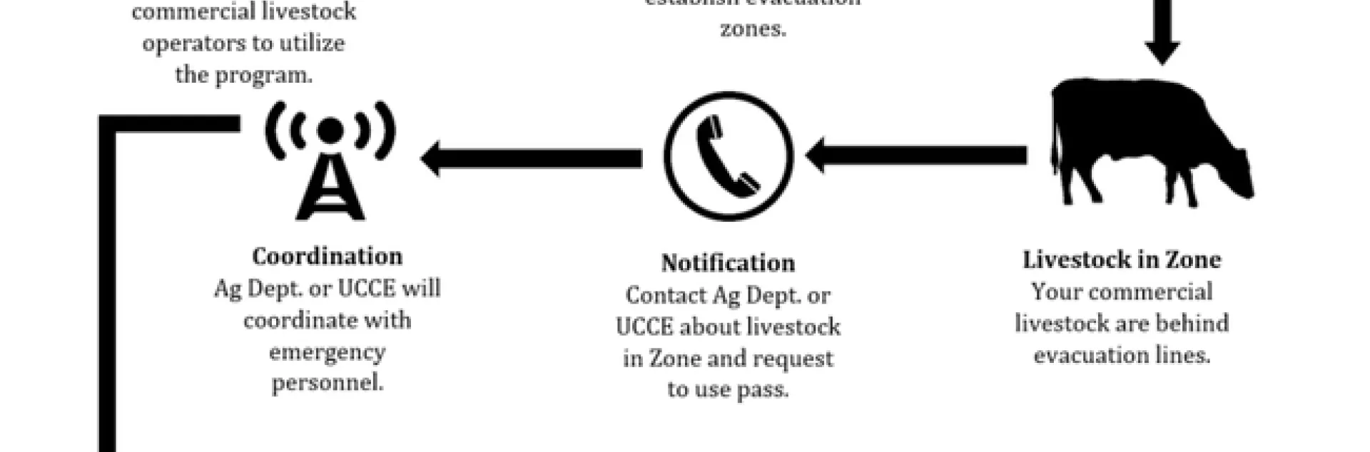If you operate a ranch in Nevada, Placer, or Yuba County, one of the first steps you should consider taking is registering for this year's Disaster Livestock Access Program. Developed last year by a steering committee comprised of local ranchers, agricultural commissioners, and UC Cooperative Extension, the Disaster Livestock Access Program is designed to coordinate with emergency managers to provide ranchers with access to livestock in evacuation zones for the purpose of feeding, watering, and caring for commercial livestock.