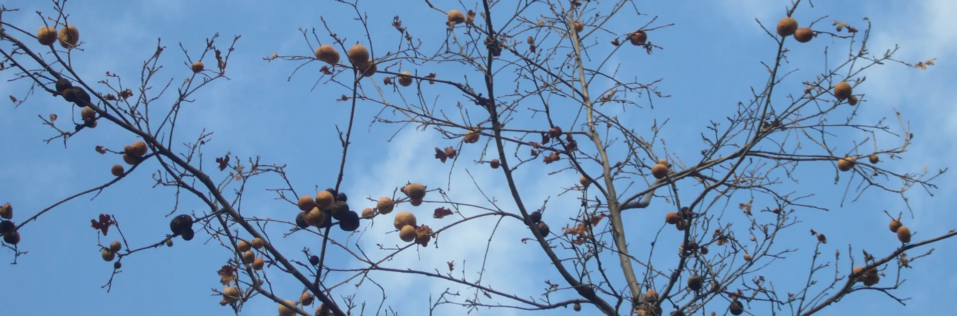 To survive in Chico, trees need to be able to thrive in both cool wet winters and very hot dry summers. That rules out a lot of tree species and yet, look at the diversity in size, shape, trunk, and bark that our trees have. Just walking along a street in winter can be an education and an inspiration, if you look up.