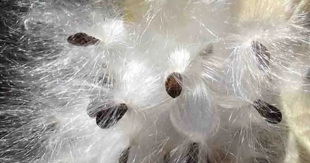 For collection purposes, wait until the seeds are visible within the fluffy material before gently separating it from the plant, or until the closed flower has formed a fluffy, feathery tip.