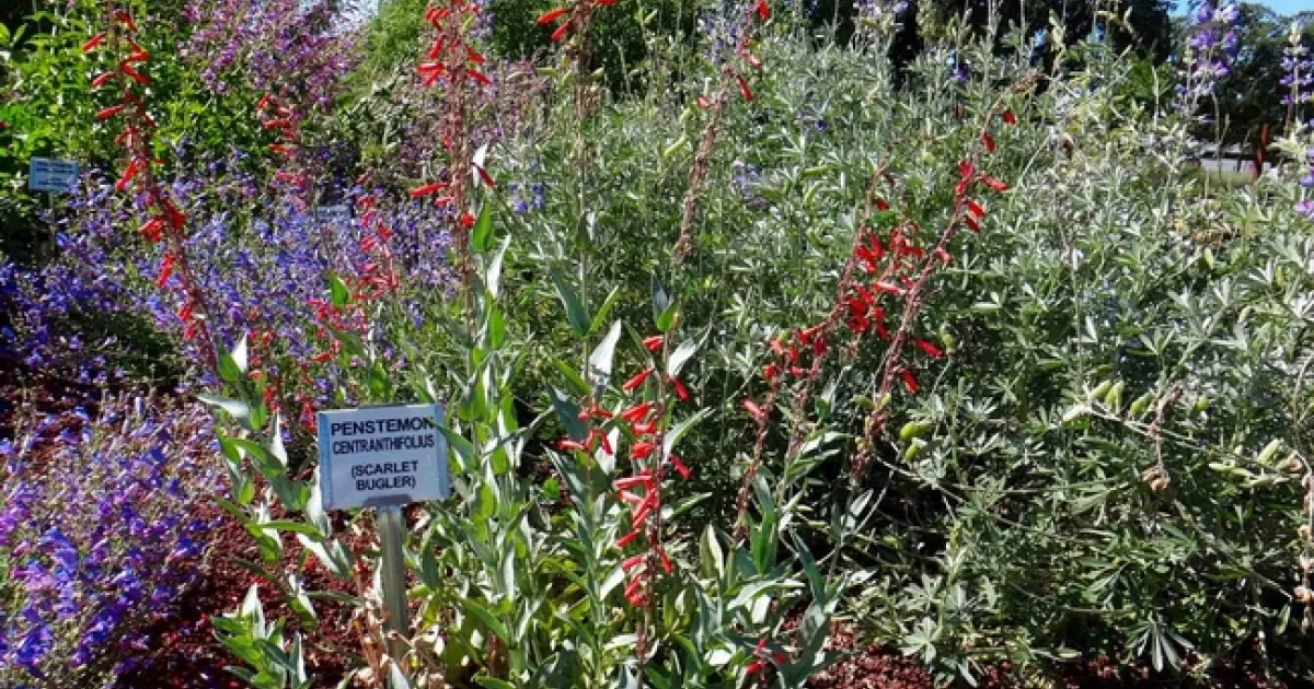 All of the themed gardens that comprise the Demonstration Garden showcase what can and/or should be planted in our environment. The last couple of decades have brought increased pressure from drought, and we want to demonstrate how we can all adjust our aesthetics and pivot to a kind of gardening that is sustainable, yet still beautiful and functional. Therefore, our plants (except for some of the edibles), are low (or no) water perennials, and all of them are either Mediterranean or California natives.