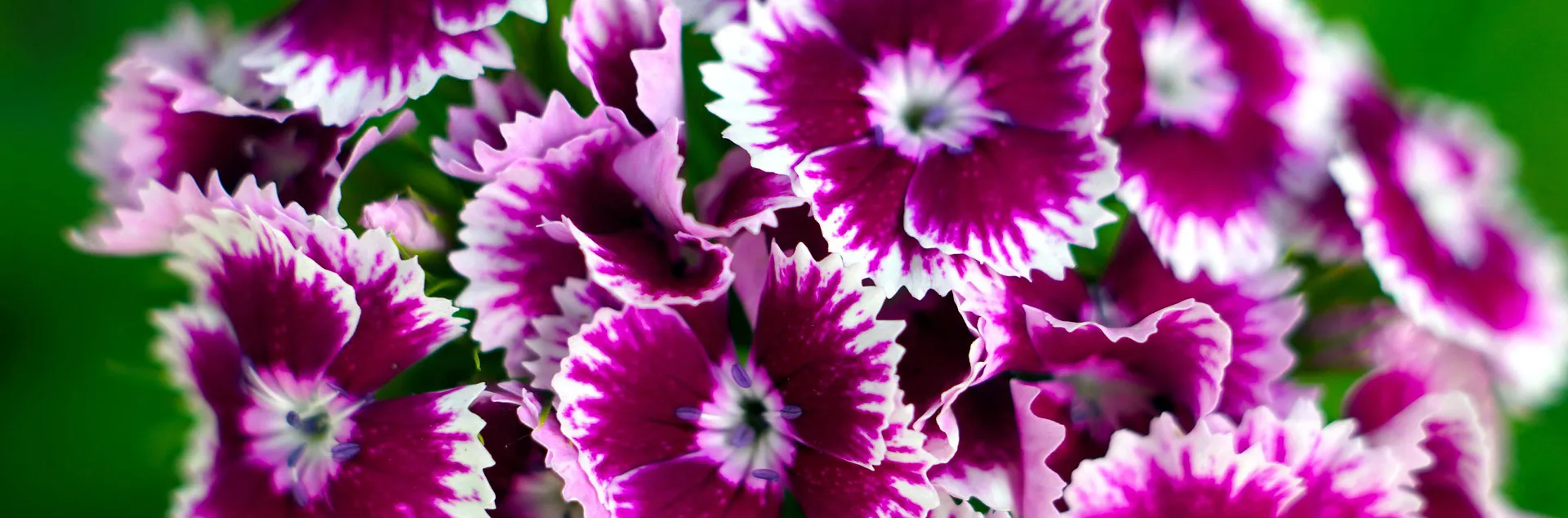 A water-wise plant, Dianthus does not tolerate wet soils, needs good air circulation, and should not be heavily mulched, especially in winter. It grows outdoors and is winter-hardy to Zone 5. These plants need at least 6 hours of sunlight each day and can tolerate very sunny conditions. Dianthuses multiply readily, have a spicy fragrance, are good as cut flowers and are deer resistant. To keep these plants healthy, remove spent blooms on tall varieties, or shear back mounding plants after bloom to encourage re-bloom. After the first killing frost, cut stems back to an inch or two above the soil line.