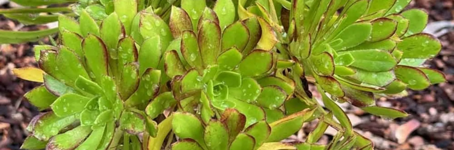 The current emphasis on water-wise gardening has created an interest in succulents. All succulents are able to store water and food in their leaves, stems and roots. These stored nutrients can be released when needed. This makes them drought tolerant. Succulents require good drainage, deep but intermittent water, bright light, and good air circulation. The soil should be open and airy with low organic matter.