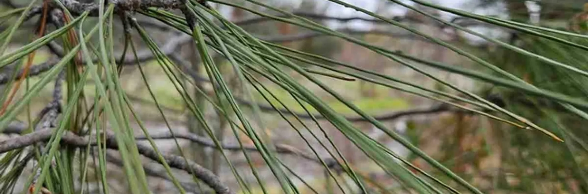 In an evolutionary adaptation to the dry hot summers of a Mediterranean climate, the gray pine has thin, gray needles up to 12 inches long that help it deflect heat and retain water. Surprisingly, this species is not fire resistant. On the contrary, it is highly flammable: its needles contain ether extracts; its wood, bark, cones, and needle sheaths all contain pitch; and its trunk often is coated with resin that has dripped from wounds. Its fire survival strategy lies in two specific adaptations. First, large trees will better survive moderate-severity fires because the thickened bark of mature trees and the self-pruned trunks with high branching limbs are best able to avoid fatal scorching. Second, seed regeneration is actually favored post-fire. As noted by the USDA, fire creates a receptive “bare mineral soil seedbed, and heat scarification of the woody seed coat increases germination rates.”