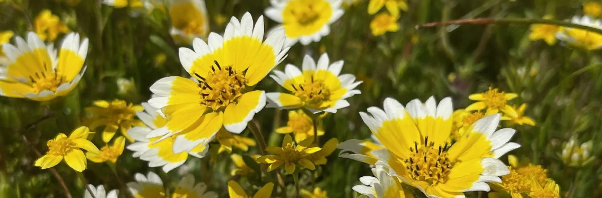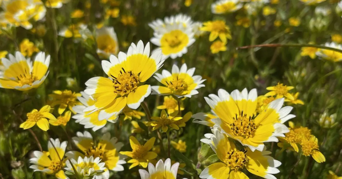 Among the joys of a California spring are swaths of annual wildflowers blooming around the state. Here in Butte County good places to view this wildflower show include Upper Bidwell Park, Table Mountain, and Feather Falls Trail. Annual wildflowers have a life cycle that lasts just one year. Seeds germinate in the fall and winter rains (or with irrigation), roots and lower leaves grow through the winter, and plants begin to bloom in the early spring, with different species blooming into early summer. Seeds are formed and mature from late spring through summer and fall, then the mother plant dies. Seeds are spread by the mother plant, the wind, or animals, in time for the whole process to start over with the next rainy season.