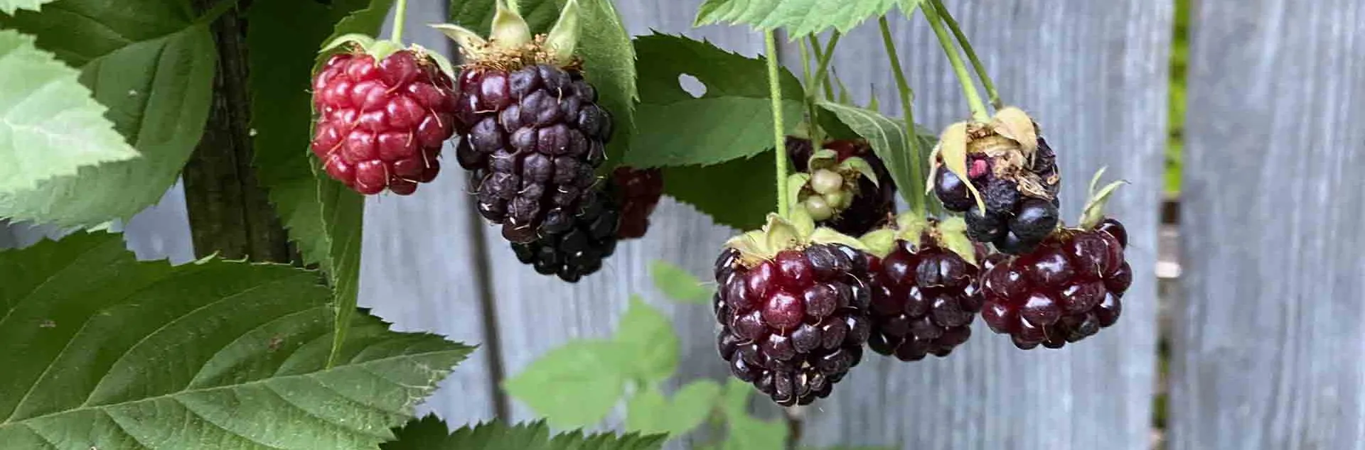 Boysenberries do not require much fertilizer. A good time to provide an extra “boost” is in the spring when the new growth begins to leaf out, and again when bloom begins. An organic fertilizer such as bone meal or fish meal can be applied. Berries require moist soil but do not thrive with “wet feet.” A drip line or soaker hose is the most efficient method of watering, since water on the fruit or leaves can trigger disease. Attention to watering is critical from bud formation through berry development and harvest.