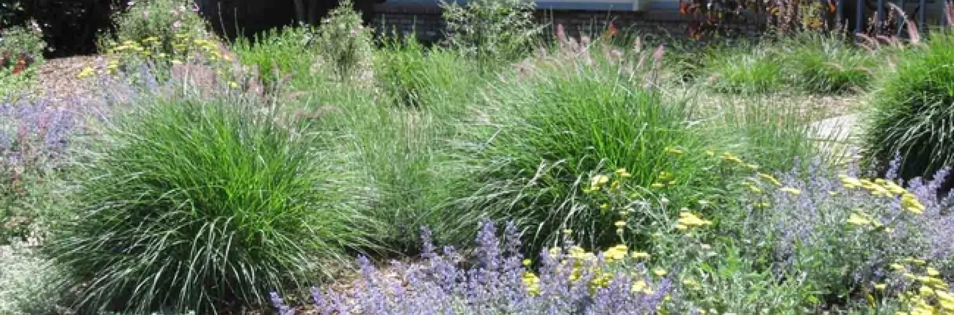 Start with hardscaping: walkways, gravel paths, small patios or decks, dry creek beds and retaining walls. These provide visual interest and reduce irrigated areas. Plan a pleasing and obvious walkway to your front door. You can edge it with intervals of plantings, in the ground or in urns. Meandering gravel paths provide a functional and low-cost way to move about the garden. A small patio invites you to relax. Dry creek beds and small retaining walls separate planting areas and provide elevation changes. You can also use an edging of stone or brick to separate planting areas.
