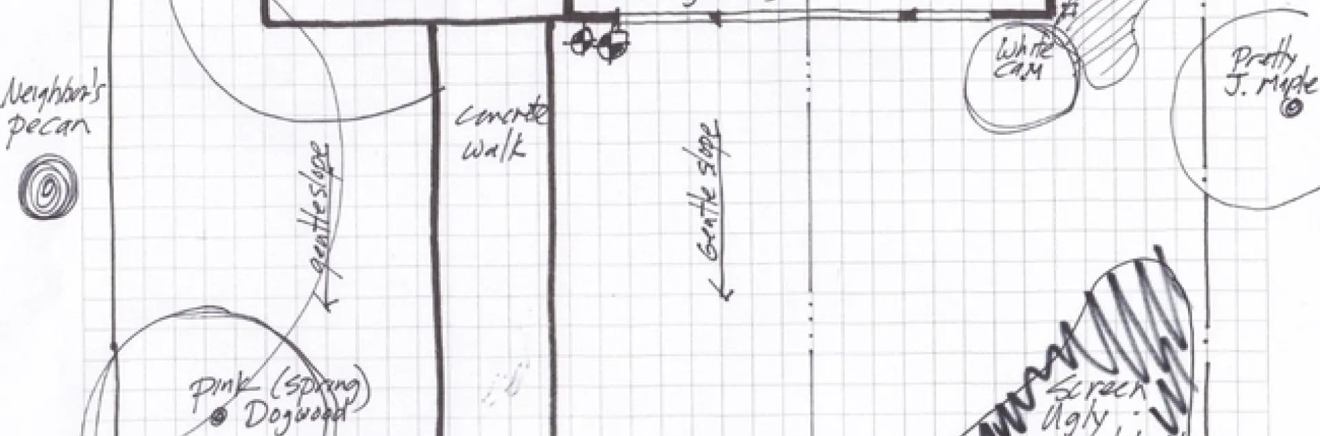 Begin by drawing a base map, to scale, of the site. Include the house footprint, the location of doors and windows, existing plants that you want to keep, hard scape areas such as paving and fencing, and utilities. Note the architectural style of your home. Make several copies of your base map.