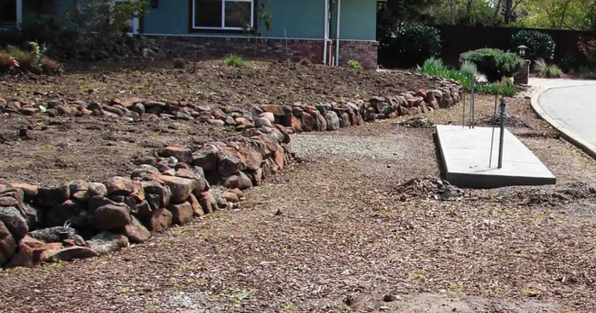 Infrastructure: Before digging any holes for plants, complete the installation of your infrastructure, including all hardscape, irrigation lines, and drainage facilities. Build berms, install focal point(s), pour concrete, place landscape rocks; all of this comes before the living elements are added. Planting beds can be outlined with rocks at the same time as planting, if the rocks are relatively small and placing them will not disturb the plants.