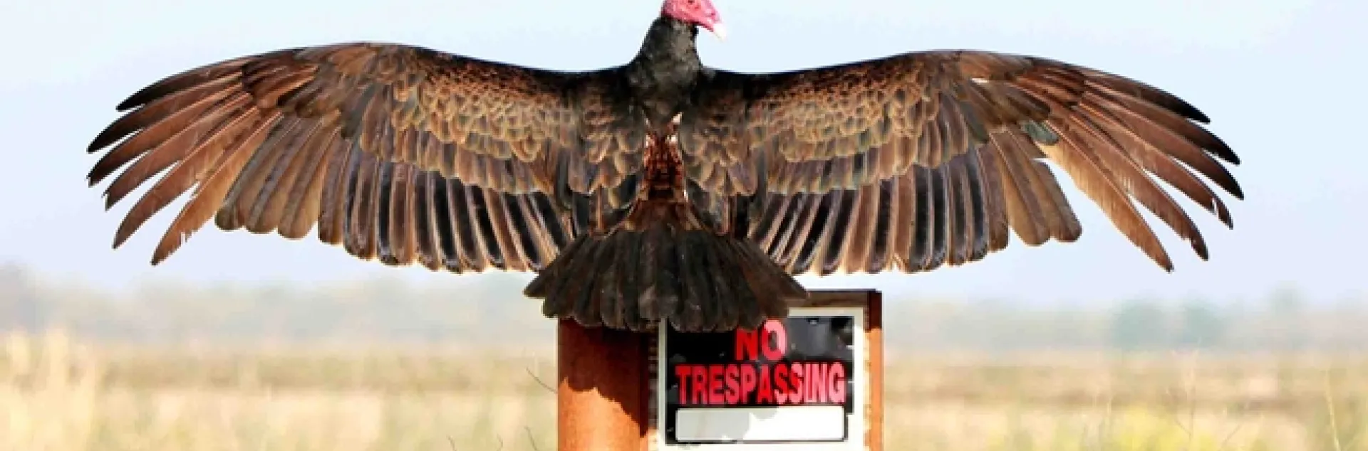 The Turkey vulture (Cathartes aura), also called the Turkey buzzard, is the most common vulture found in California. So named because of their resemblance to wild turkeys, these raptors are easy to identify – they have skull-like bald red heads, pink beaks, white bills, and brown-black bodies. Turkey vultures hiss when they are agitated or fighting over carrion. They are often seen soaring over open fields looking for food or at the side of a road, eating the meat of an animal killed by a car. Turkey vultures can become so loaded down with their meal that when threatened they will sometimes projectile vomit their food in order to fly away quickly. They have also been seen to projectile vomit up to ten feet in self-defense. Turkey vultures will defecate on their feet to cool off during hot weather. This defecation may also provide an antiseptic wash, as the vultures' digestive juices kill bacteria. In the fall they are sometimes seen in large flocks of nearly 100 birds migrating south on thermals (upward currents of warm air). Turkey vultures can live up to twenty years in the wild.