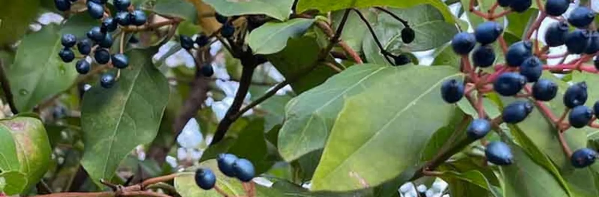 The blue-black berries of Viburnum tinus provide wintertime food for birds. J.C. Lawrence