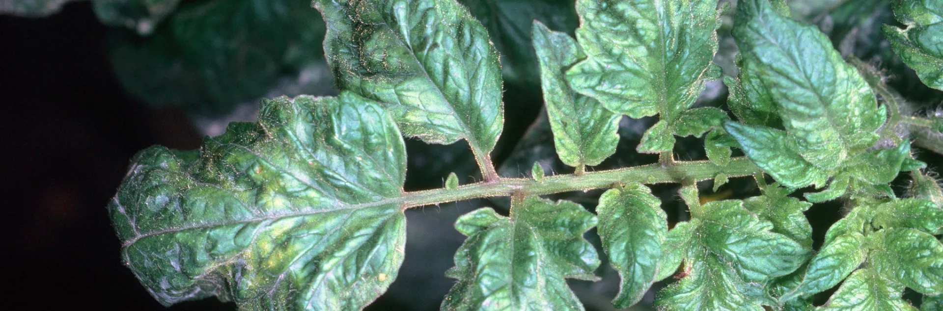 The first plant virus to be discovered was found on the leaves of tobacco plants in the late 19th century. Researchers found that sap from infected tobacco leaves caused green and yellow mottling (“mosaic”) symptoms in healthy plants. Unlike bacteria, this virus could not be filtered out, but boiling the sap destroyed the infectiousness. Tobacco Mosaic Virus (TMV), the first plant virus discovered, remains one of the most common plant viruses. It attacks not just tobacco but also other members of the nightshade family (Solanaceae), including eggplant, cucumber, pepper, potato, tomato, petunia, snapdragon, delphinium, and marigold.