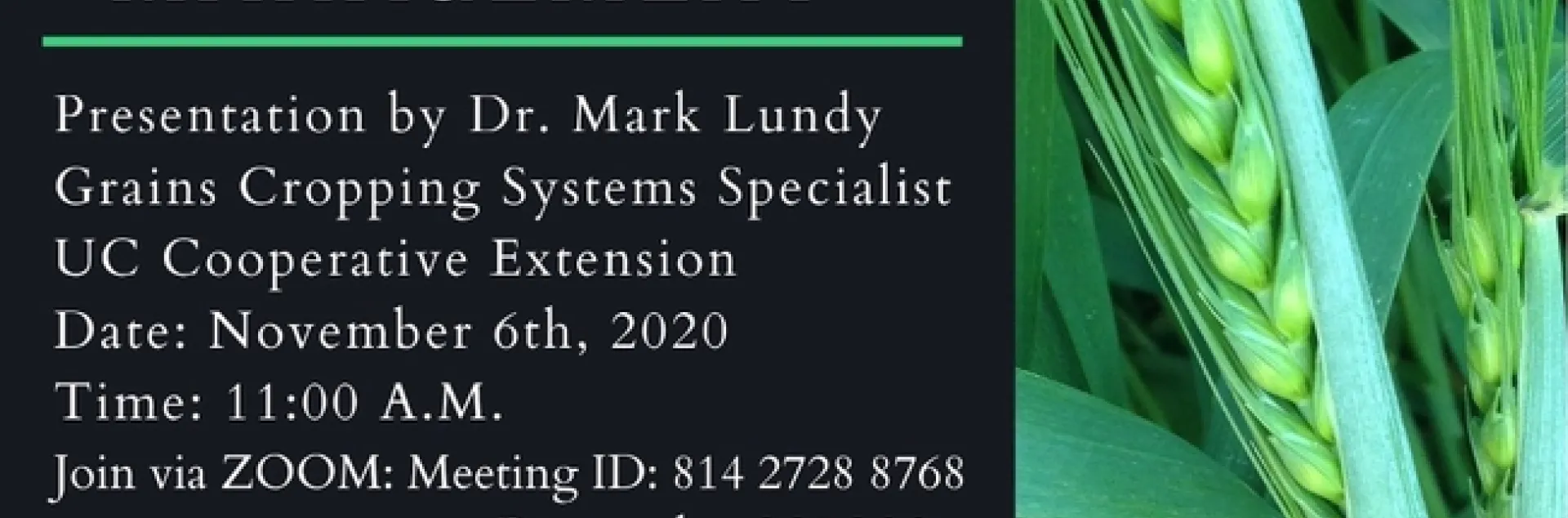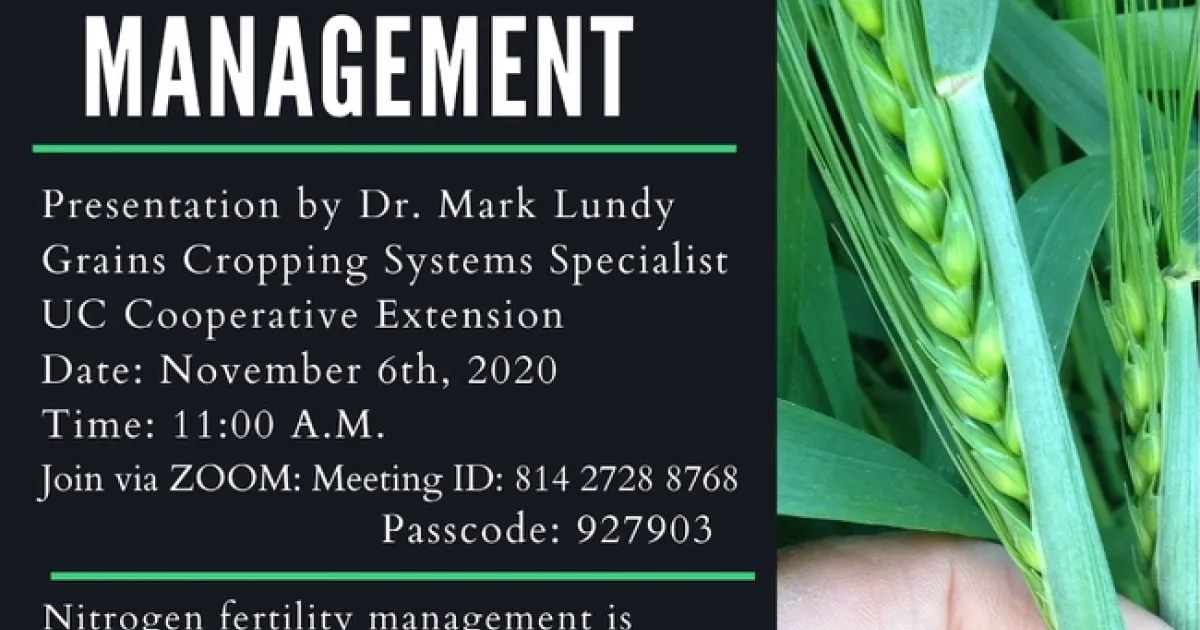 Dr. Lundy will review methods of measuring soil and plant nitrogen status. This will include some of the decision-making tools being developed by UC agronomists, and discuss methods and strategies for nitrogen management/ monitoring in California small grain rotations. Registration is free.