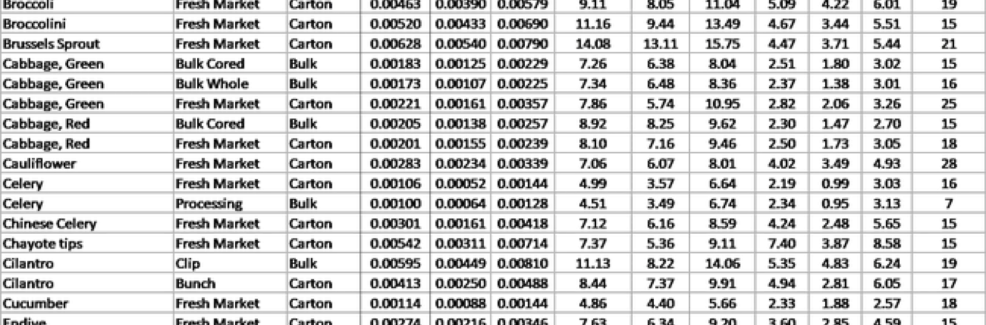 For instance, in the case of whole heads of bulk romaine lettuce which in this example has a net* yield of 36,000 lbs/acre: