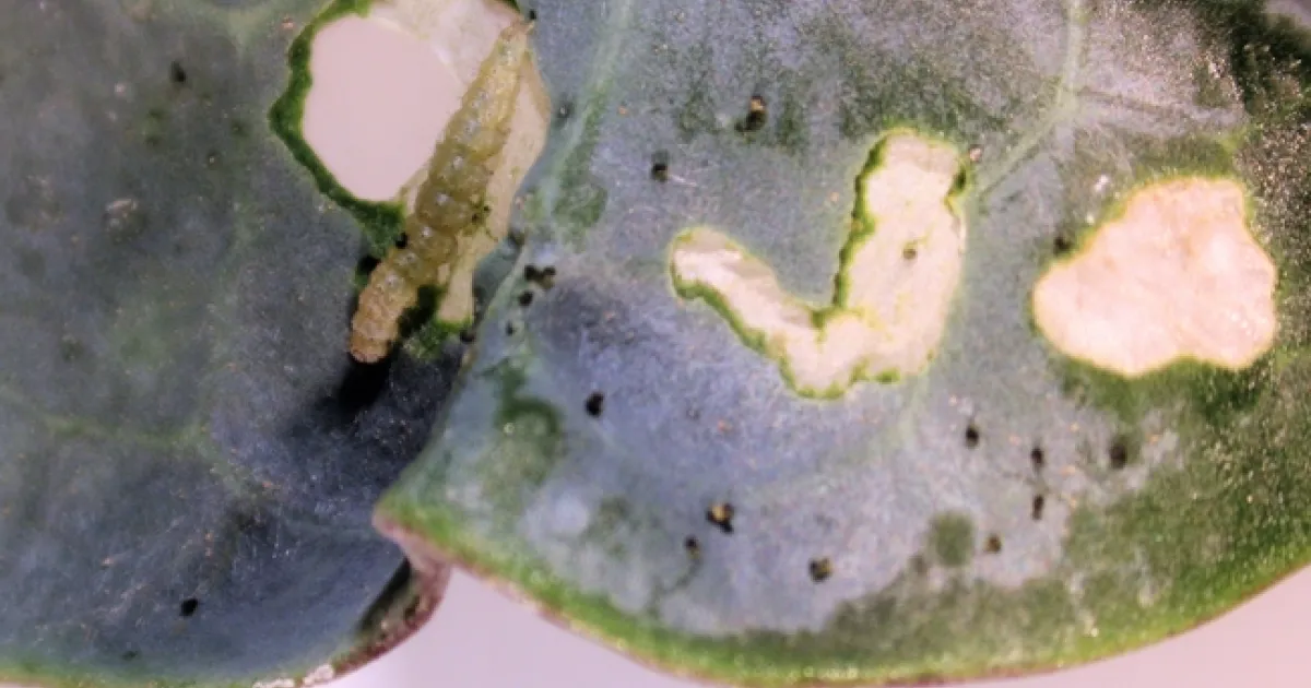 It has been a couple of “rough” weeks managing the diamondback moth (DBM), Plutella xylostella (Lepidoptera: Plutellidae), in the Central Coast. Based on my conversations with some PCAs, we are managing large populations of this moth, resulting in high infestations in cole crops like broccoli and Brussel sprouts. Larvae of this insect will typically feed on the underside of the leaves, rasping the epidermis and generating this characteristic “window panning” that results on perforations later on (Fig. 1). Diamondback larvae will also feed on the plant's growing points, floral stalks, and even on flower buds.