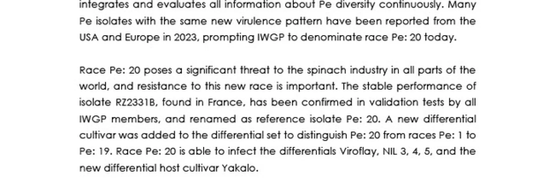 Denomination of Pe: 20, a new race of downy mildew in spinach