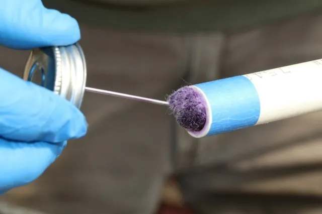 Vender: pharmacy. A coating of petroleum jelly improves the seal between the rubber stopper and PVC tube.