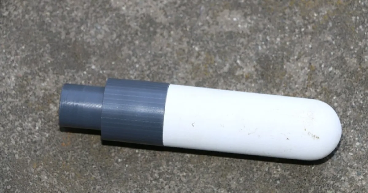 - Wrap the bottom of the PVC shaft and the top of the ceramic cup with painter's tape to prevent cement from coating the outside of the ceramic cup (Fig. 5).