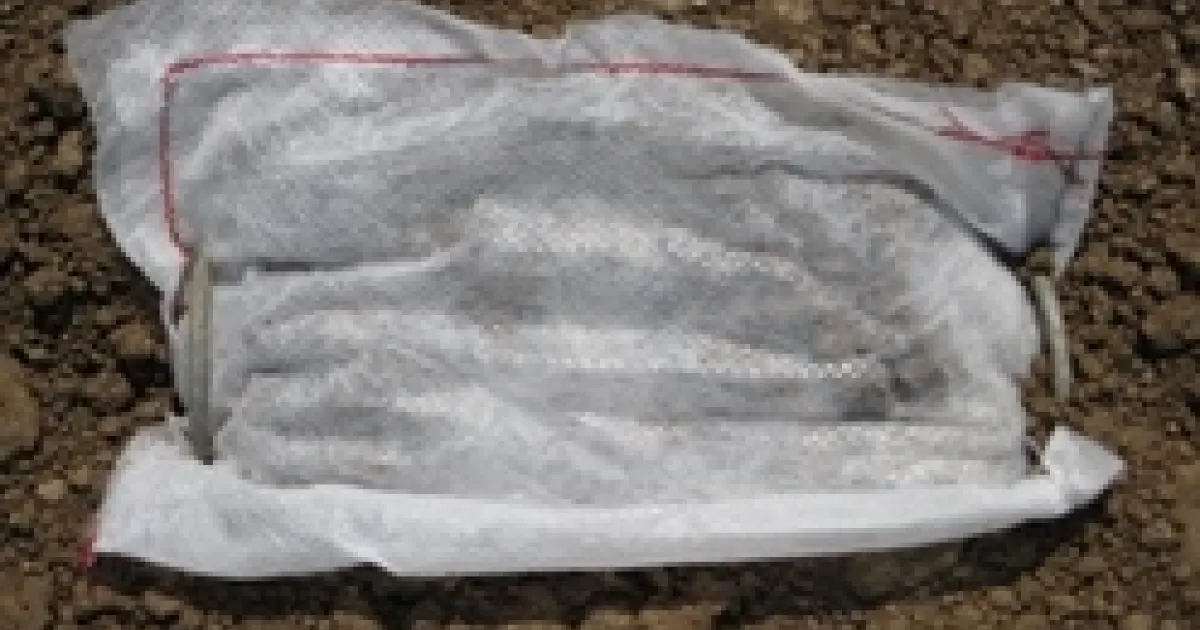 Organic fertilizers used in the production of cool season vegetables are applied by either incorporation into the soil or applied to the top of the bed (a.k.a. drop-on-top) and incorporated with sprinkler irrigation. We mimicked these application methods in studies in which we placed organic fertilizers in polyethylene pouches (See photos below) and applying them to the soil in two ways: 1) burying them 3 inches deep to simulate incorporated applications and 2) by placing the pouches on the soil surface to simulate surface applications. The 2017 evaluations were conducted in a commercial production field and the pouches were placed in the field at the beginning of the crop cycle. Four pouches were collected weekly and the contents were dried, weighed and analyzed for N (12-0-0 only) and for phosphorus (P) and potassium (K) (4-4-2); the rate of disappearance of nutrients from the pouches estimated the rate of plant-availability. Organic fertilizers used were 4-4-2 (chicken, meat and bone meal) and 12-0-0 (feather meal). The pouches were placed in the soil at the beginning of the crop cycle of full term romaine on June 19 and the final set was removed on August 14. Surface applied 4-4-2 released 24.1% of its N in the first week of the evaluation and then slowly released a total of 36.1% over the next 48 days (Table 2). Buried 4-4-2 released 30.3% of its N in the first week and a total of 54.0% over the next 48 days indicating that burying the fertilizer released greater quantities of N faster than surface applications. Surface applied 12-0-0 released 12.8% of its N in the first week of the evaluation and released a total of 31.5% over the next 48 days. Buried 12-0-0 released 30.7% of its N in the first week and a total of 86.0% over the next 48 days. Burying 12-0-0 had a more dramatic impact on the release pattern of N than for 4-4-2. The amount of P released from 4-4-2 in surface and buried applications was 10.9 and 8.5%, respectively which was low. The amount of K released from the surface and buried applications was 70.2 and 85.3%, respectively, which was high.