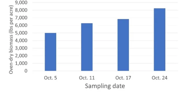 Figure 3. Merced rye cover crop biomass changes over time.