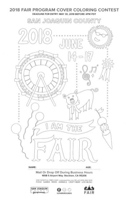 The San Joaquin County Fair is holding a coloring contest for their 2018 fair program cover! All are welcome to submit entries using the design below: