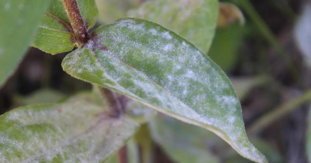 Answer: Powdery mildew is common this time of year. It is a fungal disease that appears as white, powdery patches on the upper surface of leaves, stems, and buds. Poor air circulation and shade promote growth. Unlike many fungal diseases, it thrives in warm, dry conditions. Our fall temperatures of 60-80 degrees are ideal for it. While it rarely kills plants outright, it weakens them by reducing photosynthesis and vigor. It is, at a minimum, unsightly. The good news is that once temperatures drop and rain starts, active infections should disappear.