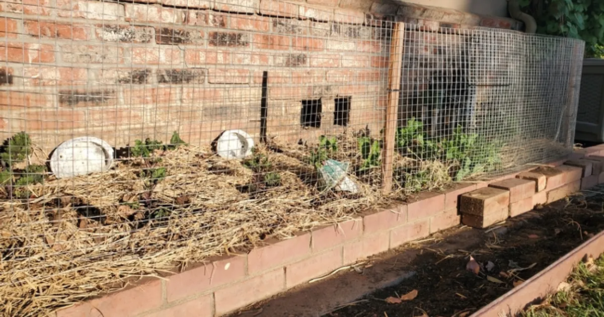 We have since secured our perimeter around our veggies with chicken wire, but then I told my boyfriend, "You know cats can jump!" We then modified our structure and added a top. I now take our convertible top off in the morning and put it back on at night to ensure consistent coverage.