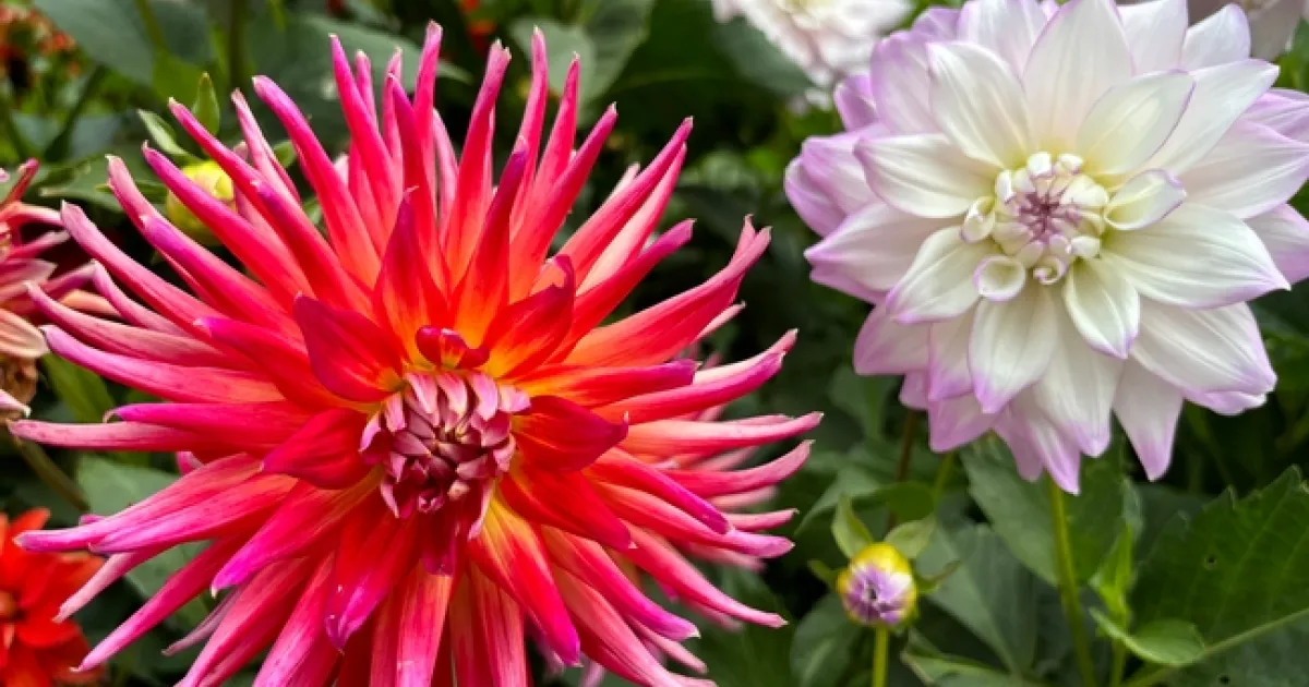 Earlier last month, when it was in the triple digits, I was enjoying a few days' reprieve in Mendocino. While there are many things to recommend this coastal town—charming architecture, stunning ocean views, very cool bookshop complete with cat--one of the highlights is the Mendocino Coast Botanical Gardens. Located a few short miles north of the town, it doesn't look like much from Highway 1, but once through the entrance, you enter another world. This sensation is particularly true if you are coming from points east where the summer heat has put a damper on your ornamentals; in these gardens, so much is in bloom, it's like springtime has never ended. The Gardens boast 47 acres of cultivated and natural spaces with well-marked trails that lead to the bluffs overlooking the ocean. There is a great variety of plant life here, but this time of year, one of the real stunners is the dahlias. The Dahlia Garden has 150 varieties and over 625 plants making for a breathtaking display. The flowers bloom from June to October, but their peak bloom time is August and September.