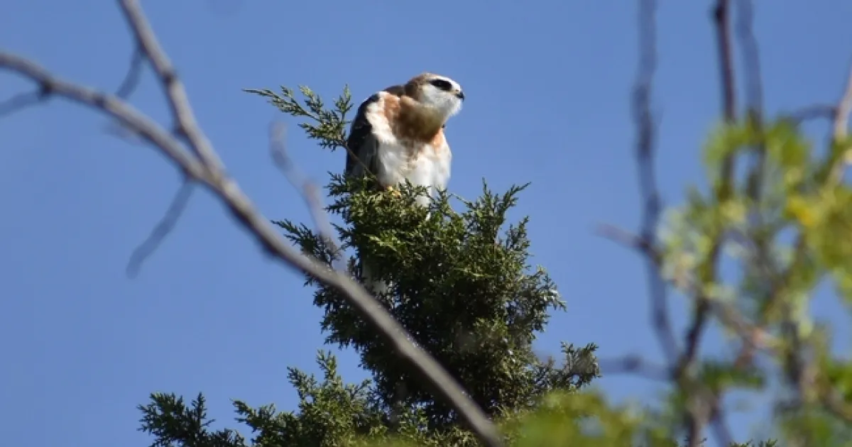 Occasionally, one gets to observe closely one of the beauties of nature, which is not so common. A couple of years ago, a pair of white-tailed kites, seemingly unperturbed by the children playing at the elementary school and the sometimes-busy traffic, chose a tree for their nest that allowed the neighborhood to watch and marvel. We saw the courting behavior where they would tangle talons together and fall through the air. We watched the steady collection of twigs as the nest grew in a position in the tree that to us seemed precarious. Nests are shallow cups about 21 inches wide in which a clutch of up to 4 eggs are laid in a cup lined with grass about 7 inches deep, 4 inches wide. Then the wait as the parents incubated the eggs for about 30 days with sorties for food. Eventually, we could see two fledglings with voracious appetites. Their ‘fluff' slowly transformed into adult plumage. As they tried out their wings and figured out how to use their tail feathers it looked as though any minute they would fall. Each day I would go and set up my camera as they seemed to be on the brink of flight. One morning watching I was lucky enough to capture the moment of first flight, the magic, the glory of nature and the beauty.