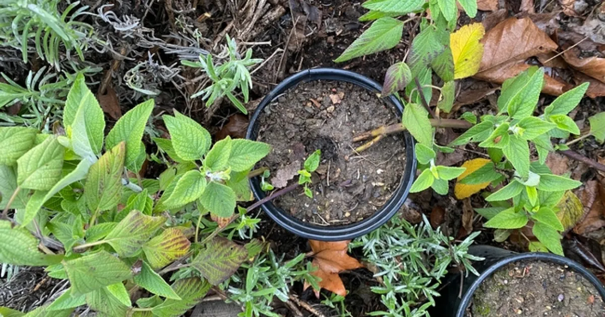 Here's what we did, we were well pleased with our propagation success from Salvia 'Anthony Parker'. Here it is in its blooming glory - lasting from July to February. Last summer we placed a few soil-filled 1-gallon pots under the foliage and pinned some branches, (they need to be pliable so as not to break) to the soil surface with irrigation staples making sure a node was in contact with the soil and 'voila' ... more Salvia 'Anthony Parker' healthy, thriving plants. We kept the pots moist but not soggy. When winter pruning we also found a couple of self-propagation plants developing.