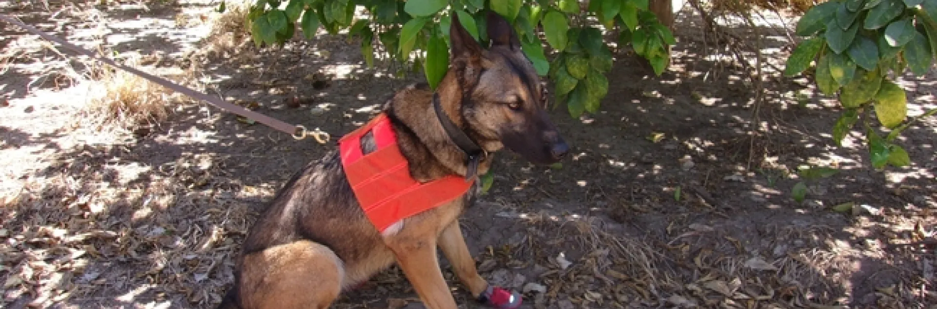 Canines have a highly sensitive scent detection capability that is significantly better (parts per trillion) than most laboratory instruments and they can be trained to “alert” (either sit or lay) when they detect specific ‘smells' (known as scent signatures). Most people are familiar with their ability to detect bombs, drugs, and plant material at airports.  However, canines are also used to detect agricultural pests and diseases.