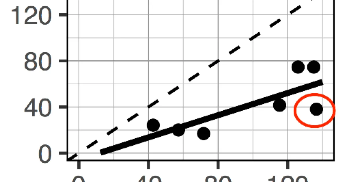 Between lab variation: After sending a set of 7 California soils to three commercial labs and running them here at UC Davis, a very low level of agreement was found. Although there was agreement in the general trend—the high values were generally higher from all labs and the lower values were low from all labs—the absolute values varied considerably. On the surface, this is a seemingly contradictory finding. However, the graph below helps to illustrate the point using data from two of the labs. The results have an acceptable R-squared value (R2=0.61), but the individual points differ from one another (greater similarity between the two labs would be indicated by points being closer to the 1:1 dotted line). For example, the point circled in red would get a value of 40 from one lab and a value of 140 from another; an increase of approximately 250%. When a separate set of 20 soils from across the US were retested in commercial labs, the average variation between the labs was ±20% for a given soil. This value was much higher than traditional lab metrics, which had variations as low as 1%.