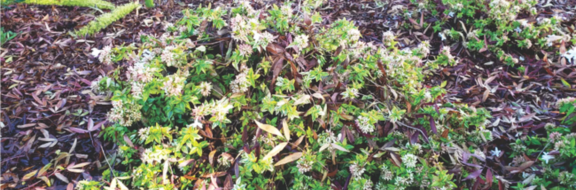 Red Loropetalum- No fall cleanup, only infrequent general shaping to keep the desired size.
