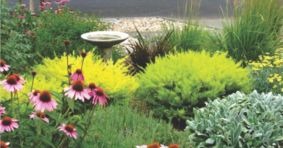 Planting should take place only after you've prepared the soil by adding generous amounts of compost. Avoid using chemicals and synthetics that harm the soil's fertility. Till the soil as little as possible. Install drip irrigation for water efficiency. Mulch after planting. Finally, include a wide variety of plants rather than just one or two species to promote biodiversity and maintain a healthy ecosystem. As the photos show, it's very possible to design a landscape that's lush, beautiful and water-wise.